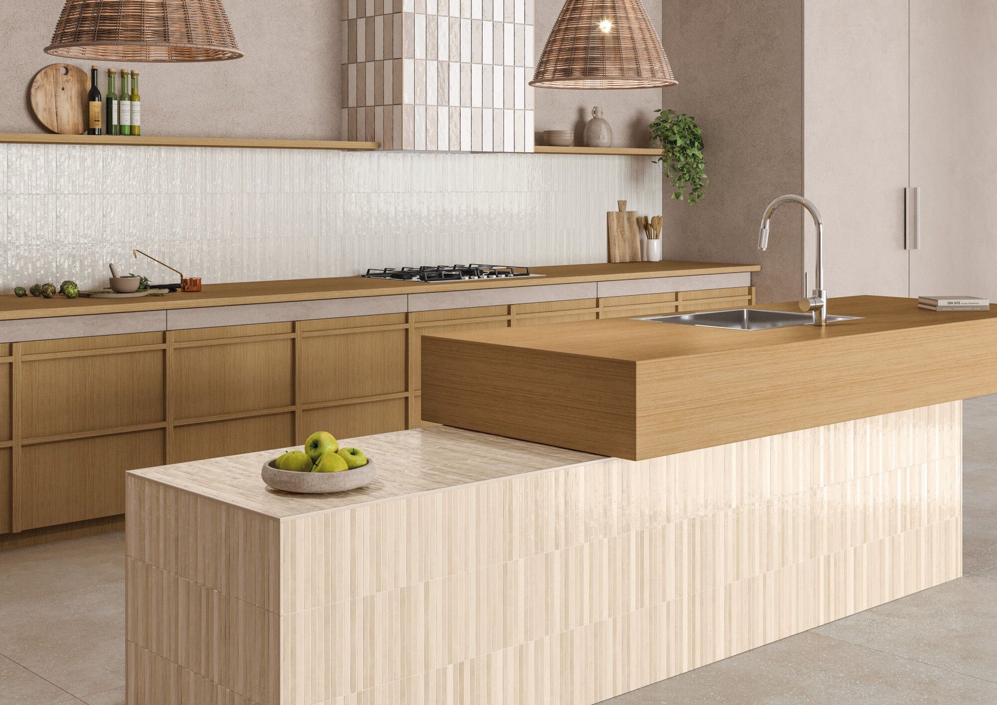 JOIA est une collection de carreaux muraux 20×20 cm, alliant brillance, élégance et modernité. Composée de délicates lamelles “kitkat” en céramique blanche, elle joue avec la lumière pour créer des reflets subtils et dynamiques.