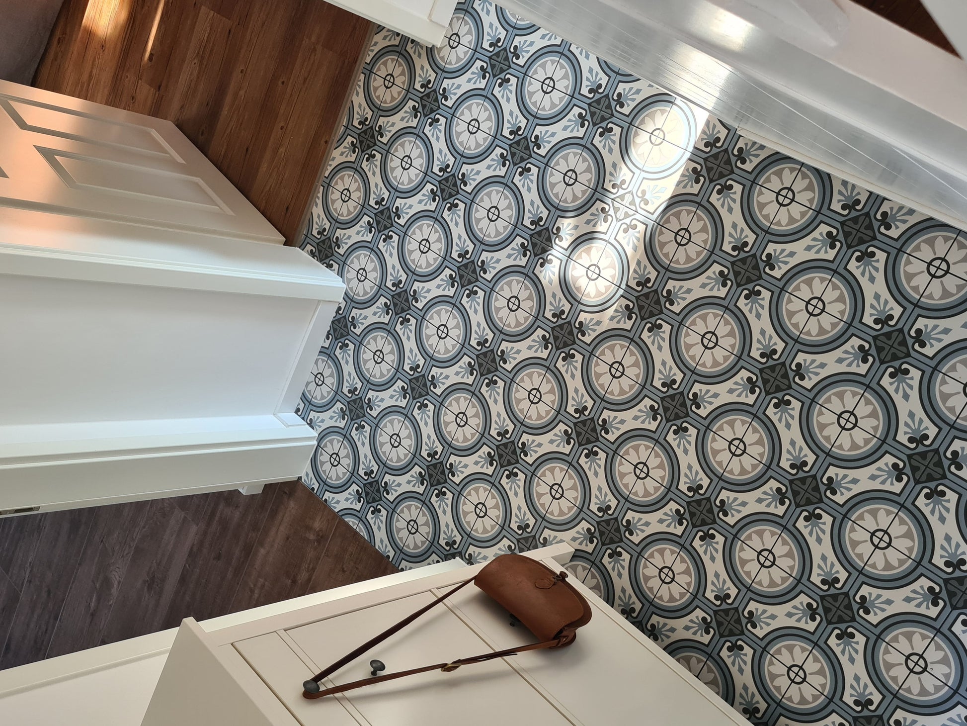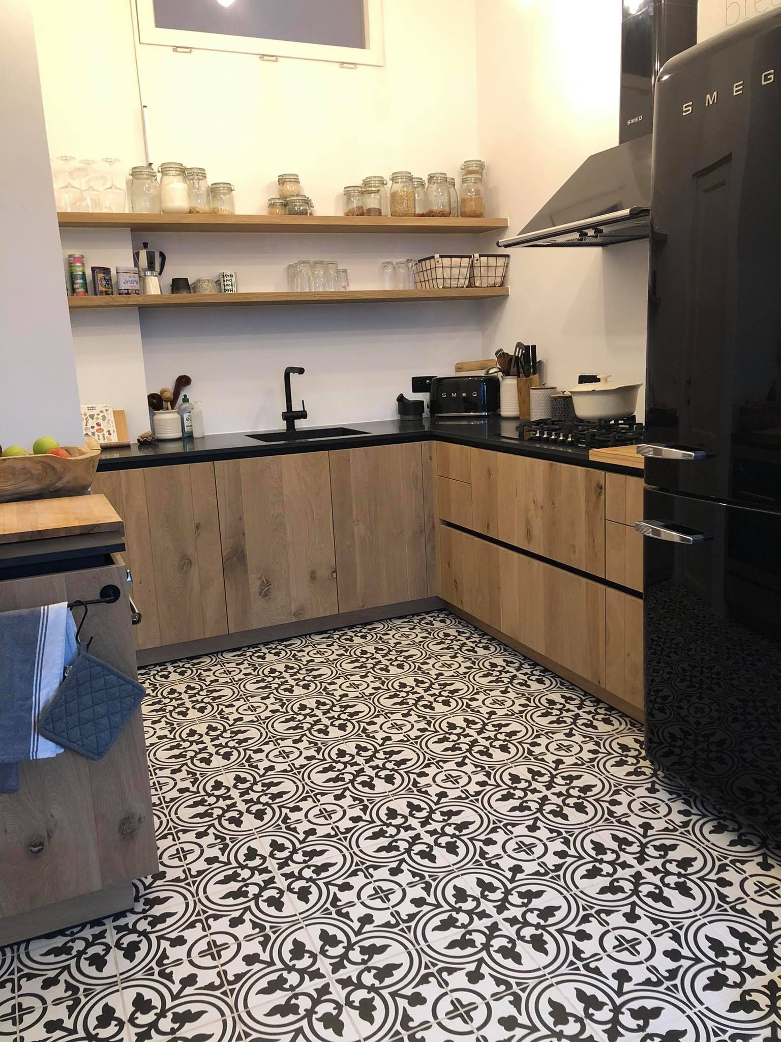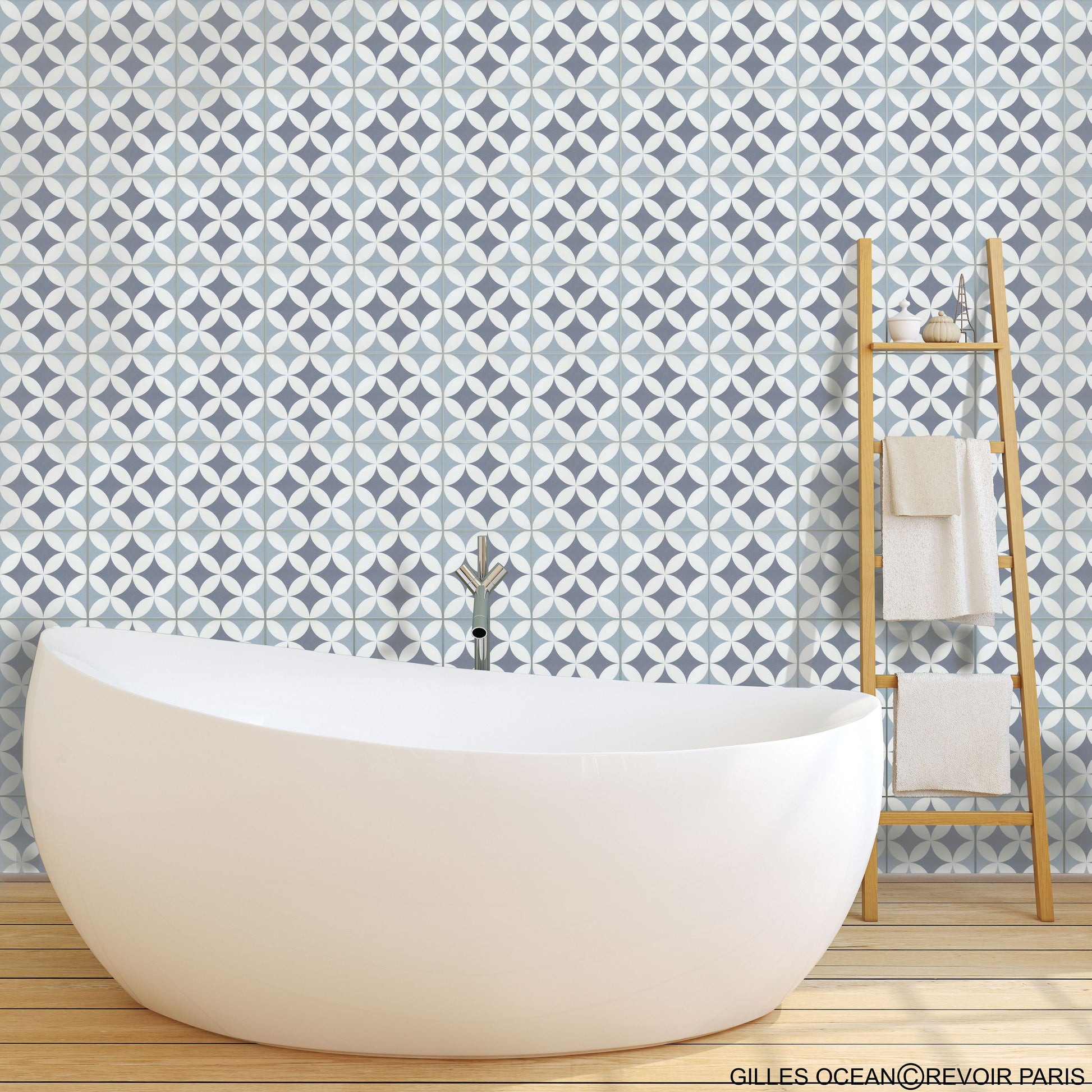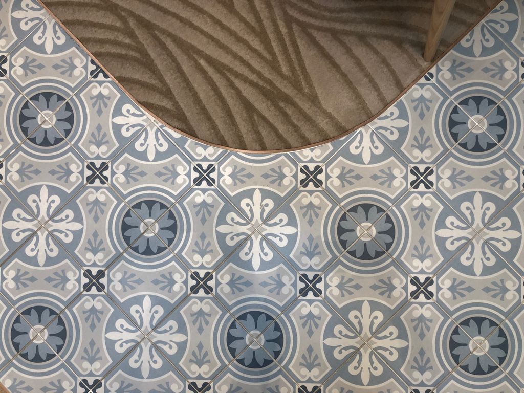 La Madeleine de Revoir Paris se compose de carreaux 20x20 cm avec un rendu volontairement artisanal. Les motifs sont très décoratifs, inspirés à la fois du carrelage ancien et de designs plus contemporains, avec une ambiance rétro chic proche du carreau de ciment.